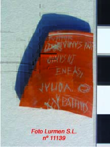 Eneas aparece en tres grafitos del sector 5, recinto 59, UE 51144 y, en uno de ellos, dos veces. En todos formando partes de textos de carácter, digamos, genealógico.