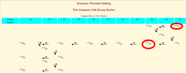 El principio de la datación es que el uranio es disoluble en agua, y el ‘nieto’ torio (y el protactinio como ‘nieto’ del 235-uranio) no.