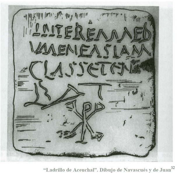 | En Hispania encontramos por lo menos otro ejemplo donde el nombre de Eneas (escrito como tal!) es asociado al cristianismo – con el crismo. (informe de Idoia Filloy Informe sobre los textos en latín de los grafitos de carácter excepcional de Iruña-Veleia.) |