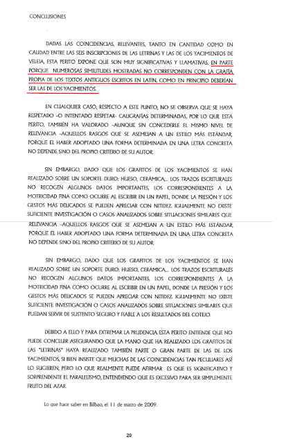 - En sus conclusiones vuelve a mencionar que las letras se desvían de ‘la grafía propia de los textos antiguos escritos en latín’.