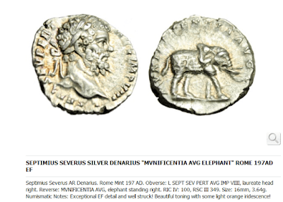 Quizás la manera más sencilla es en alguna moneda, en general el motivo de animales parece ser muy apreciado en las monedas romanas de todas las épocas (http://www.romancoins.info/Animals-On-Coins.html#Elephant), aunque también en la literatura romana el elefante era un tema, tanto como animal de guerra (Livius, Plutarchus), ética (Seneca, Cicero), historia natural (Plinius), etc. (ver http://penelope.uchicago.edu/~grout/encyclopaedia_romana/gladiators/elephantus.html)