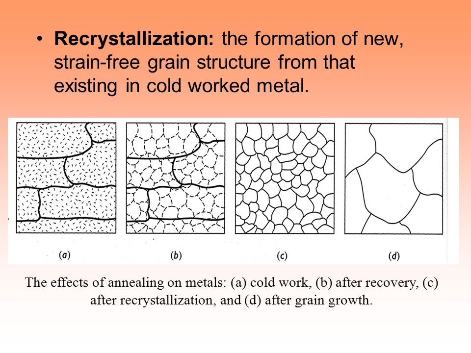 Este proceso de recristalización es a temperaturas ambientales extremadamente lento, pero van muy rápido a temperaturas más elevadas. Los tratamientos térmicos después de deformación de una pieza de metal son el pan de cada día en las fábricas, pero a temperaturas bajas dura siglos y miles de años.