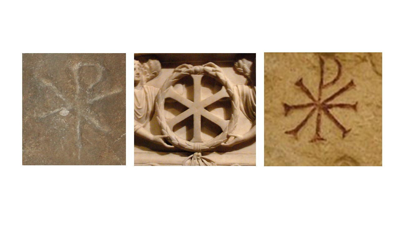 Si la X representa a Cristo, ¿qué relación tiene Cristo con una estrella azul? Aunque no hay referencias expresas a su color, está documentada en la Antigüedad la asociación de Cristo con una estrella. Por una parte, dos símbolos cristianos de la Antigüedad, el iota chi (IX) y el crismón o chi rho (Fig. 6), tienen forma de estrella de seis puntas, el último con un semicírculo añadido en la punta superior, que podría interpretarse como una cabeza humana que intenta “humanizar” la estrella (al igual que el semicírculo de otro símbolo cristiano antiguo, el staurograma, también presente en Iruña-Veleia, se ha interpretado como representación de la cabeza de Cristo crucificado [12]). La simbología cristiana en forma de estrella se aprecia también en el extraño símbolo de una inscripción de Dalmacia, parecido a un crismón, pero en forma de estrella de ocho puntas, como si fuera un staurograma al que se ha superpuesto una X (Fig. 6).