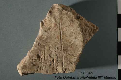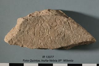 En Iruña-Veleia, en el Sector 6, junto a escenas del Sinai, Tabernáculo, las Tablas de la Ley…hay una pieza que no ha sido «descifrada» y que conjeturo que está queriendo explicar esa escena de Moisés con su vara sacando agua de la roca de Horeb.