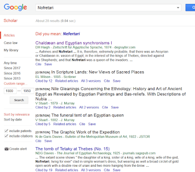 Hemos visto que redescubrimiento de la Reina Nefertiti occure ya en siglo XVIII y sobre todo a partir de 1820. También la primera ocurrencia de la forma Nefertiti es de finales