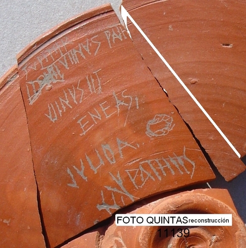 Quienes seguimos este blog desde su creación a finales de 2012 ya hemos hablado de la J en numerosas ocasiones y no he dicho para ellos hasta ahora nada nuevo. Pero la introducción a este post que supone todo lo dicho hasta ahora está dirigido a las personas que por primera vez se acercan al asunto de los grafitos de Iruña-Veleia y que acuden a este blog en busca de información, lectores que a menudo descuidamos los autores de este blog por dar por hecho que todos sabemos de lo que hablamos, cuando ello no es así (aprovecho la ocasión para disculparme personalmente por ese descuido nuestro de los lectores nuevos y de los nuevos lectores en potencia que habrán de llegar y que se pierden al leer nuestros artículos, por falta de feedback y siendo ello error nuestro y solamente nuestro). Lo que viene a continuación, como lo escrito hasta ahora, está dirigido a esos nuevos lectores, pero ya también a los veteranos, y se trata de un nuevo testimonio para nuestra colección (nuevo al menos para mí, y pido perdón si ya había sido traído alguna vez aquí o a algún otro lugar por alguien y yo me lo había perdido) que prueba la pronunciación como yod de la I precediendo a la vocal U en época romana en la Península Ibérica, concretamente en este caso en la ciudad celtíbera y romana de Segóbriga (Saelices, Cuenca).