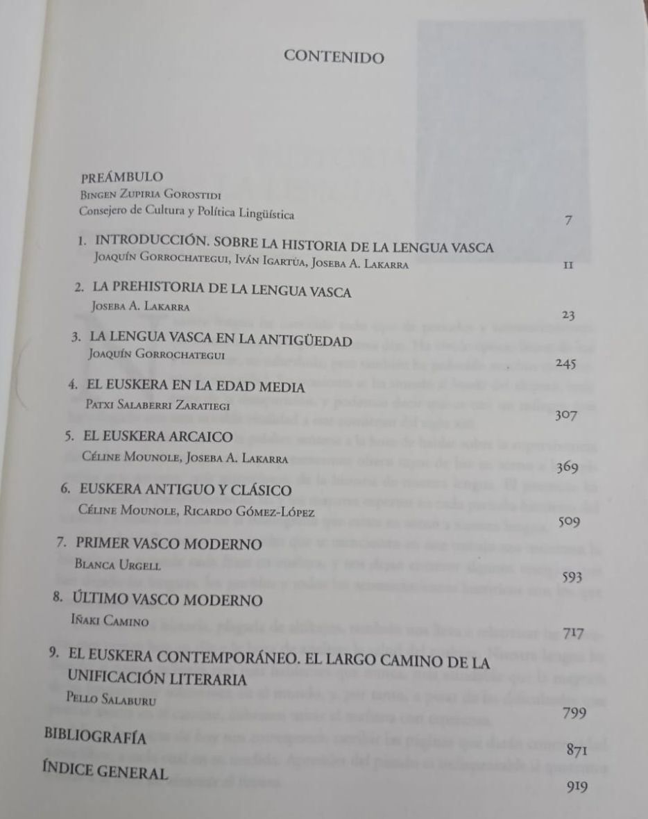 «La investigación para este libro comenzó hace aproximadamente cinco años. En febrero de 2013, Ander Egurtzegi, entonces estudiante de posgrado en Euskal Herriko Unibertsitatea (UPV / EHU, Universidad del País Vasco). bajo la supervisión primaria del profesor Joseba Lakarra, asistió al Centro de Graduados de CUNY para pasar un semestre trabajando conmigo en fonología histórica vasca. En ese momento, fui co-supervisor de la disertación del Dr. Egurtzegi «Hacia una fonología diacrónica fonética del euskera», completada en 2014. Para prepararme para esta supervisión, leí los materiales que Ander había tenido la gentileza de enviar por adelantado, incluido el de Luis Michelena. trabajos recogidos, la monografía de Aquitania de Gorrochategui y los estudios del profesor Lakarra sobre la estructura de la raíz proto vasca.
