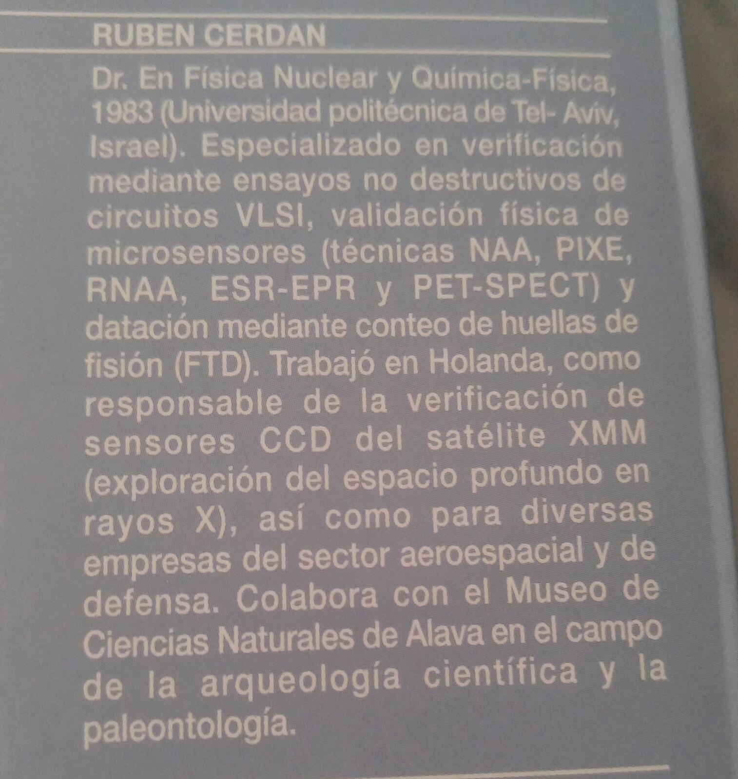 Insistió en la incoherencia de que el IPCE aportó 3 informes. Un primero aparentemente final [el que todo el mundo cita], un segundo con las imagenes de fluorescencia que a parte de unos pocos elementos no fue interpretado de 6 autores, y un tercer informe donde se reevalúa 3 piezas y donde cambia de criterio relativo a metales no oxidados en el caso de hierro no aleado [y donde se observan en varias ocasiones metales entre costras, es decir evidencias recientes y antiguas mezcladas, lo que significa estratigraficamente que los surcos son antiguos!].