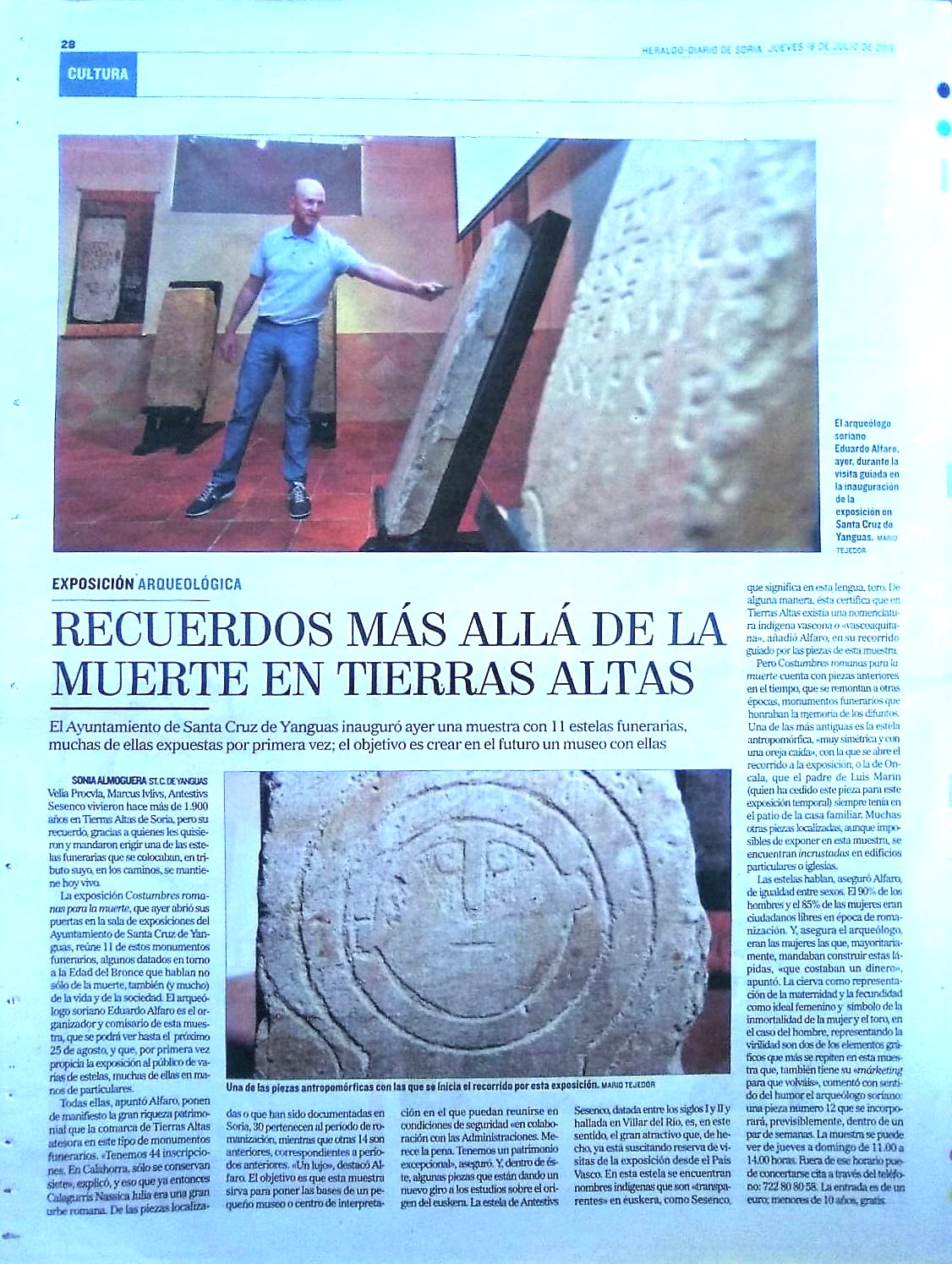 Desde el 19 de julio 2019 (ya casi dos semanas) hasta el 25 de agosto 2019 están expuestas en Santa Cruz de Yanguas (Tierras Altas de Soria) importantes pruebas epigráficas del euskera de época romana de la zona, y con varios nuevos epigrafos en euskera todavía no publicados!