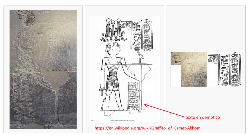 “A continuación saca de un departamento secreto del santuario ciertos libros cuya escritura es desconocida: en unos hay dibujos de toda clase de animales y son símbolos de formularios litúrgicos abreviados; en otros hay trazos nudosos, o circulares, ya sea en forma de ruedas, ya de apretadas y caprichosas espirales para velar el texto de la curiosidad de los profanos” (Apuleyo, Met. 22, 8 y ss.)