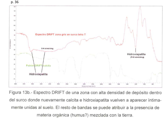Las conclusiones del informe de Navarro, del Instituto del Patrimonio Cultural de España (IPCE), que consideran que la mayoría de los grafitos analizados son de “ejecución reciente”, carecen igualmente de validez científica por múltiples razones: 1) no se describen con detalle los criterios utilizados en la selección de las piezas analizadas, en la que solo estuvo presente la parte querellante y no la querellada; 2) el estudio carece de grupos de grafitos de control, de ejecución indudablemente antigua y reciente, que deben ser siempre seleccionados antes de realizar los análisis; 3) no se descarta que las partículas metálicas superficiales supuestamente modernas y las secciones de costra detectadas en algunos grafitos tengan su origen en manipulaciones posteriores a su hallazgo (por el contrario, el informe sugiere que ha habido “retoques” recientes en algunos grafitos que considera de ejecución probablemente antigua); 4) se hacen afirmaciones gratuitas, como la del origen intencionado y reciente de los “rellenos” de los grafitos, no sustentadas por ninguna evidencia; 5) se intenta ocultar el hecho, favorable a la autenticidad, de que la composición mineralógica y el aspecto microscópico de los depósitos (“rellenos”) de algunos grafitos “excepcionales” coinciden con los del único grafito que en el informe es considerado genuinamente antiguo, tal como se observa en las fotografías que se muestran en el mismo (19).
