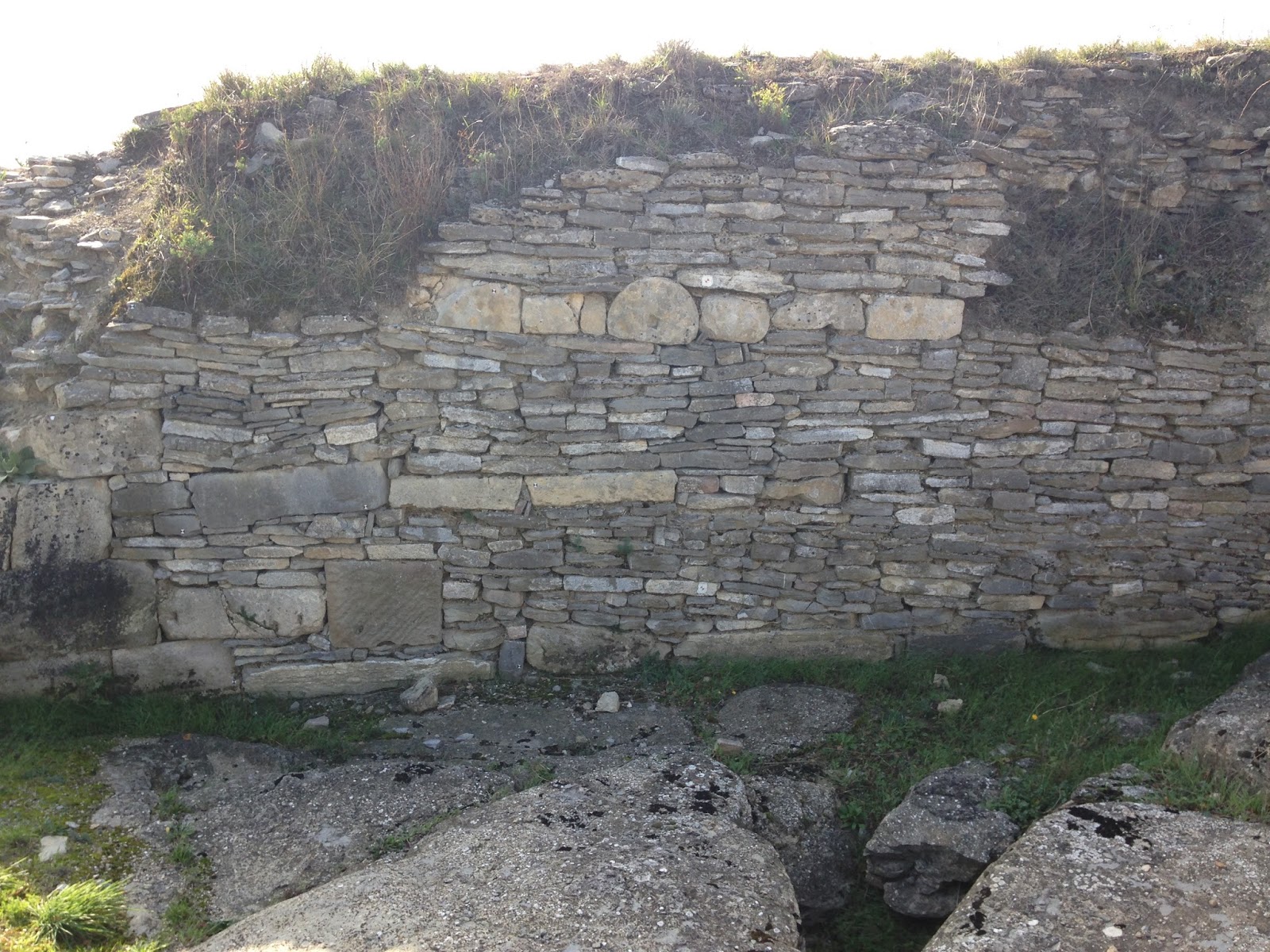 Si nos fijamos en el nivel con restos de columnas dentro de la muralla podemos concluir que LURMEN excavó este sector hasta el sustrato rocoso, excavando unos 2 metros, y que su intervención es más importante que la de Elorza. Curiosamente la señalización de Nuñez (o bajo su dirección) no menciona la intervención de LURMEN.