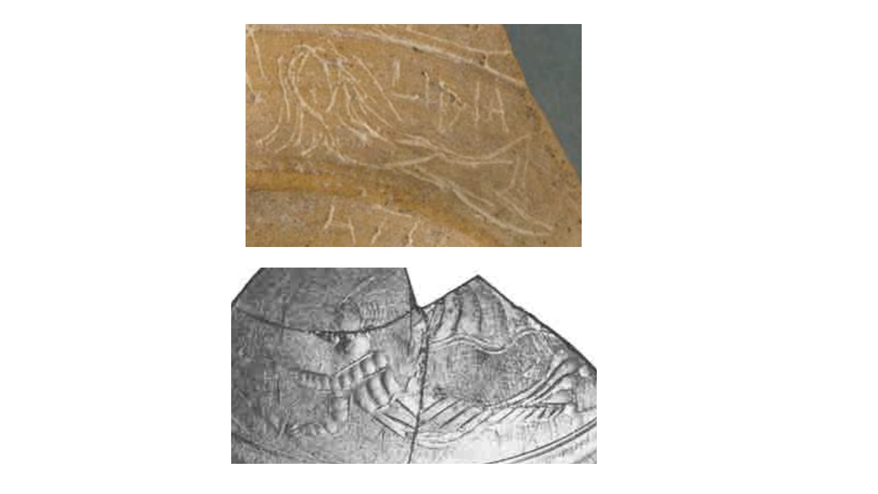 Tres esclavos griegos del siglo V se encomiendan a una pareja de santos locales. Tres nombres propios griegos del siglo V que añadir a la onomástica veleiense, tan rica en detalles como estos. Lidia (y Libia) aparece otra vez, pero como sirena en otro ostracon misterioso. De nuevo ese nombre (y Libia) van juntos en otro ostracon más, pero de un siglo anterior, entre una ensaladilla de nombres, dibujitos y lazadas.