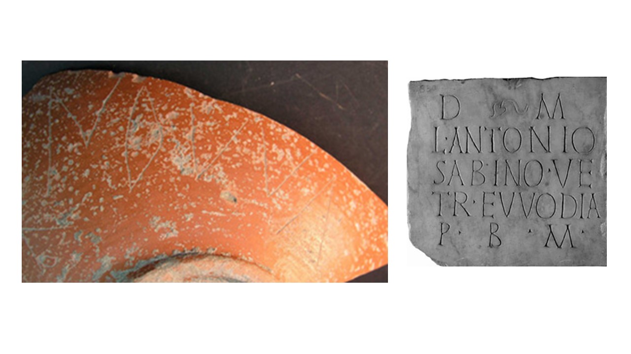 – Formas de las letras. Sorprendentemente, en ninguno de los informes de la Comisión se hace comentario alguno sobre los paralelos antiguos de las formas de algunas letras de los grafitos de Iruña-Veleia, muy diferentes de las actuales y muy parecidas a otras procedentes de la Antigüedad romana, como las de los grafitos de Pompeya, Ostia Antica, Segóbriga o La Cabañeta o las tablillas de Vindolanda.