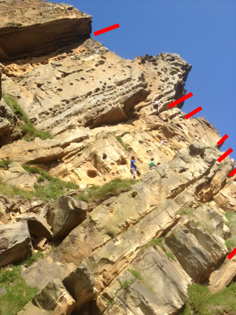 Expresión de la falla de Andutz en el paisaje en Punto Mendata. Aquí hay un hiato de 4 milliones de años en la estratigrafía a causa de la falla. (Foto propria)