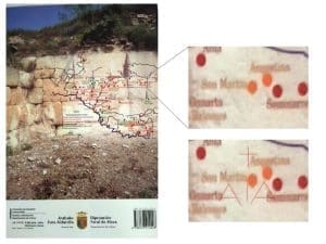 El hallazgo de una inscripción en la muralla romana del yacimiento de Iruña-Veleia en la que parece leerse la palabra ATA debajo de una cruz, fue anunciada recientemente por la asociación Iruña-Veleia Martxan [2] (Figura 1). Aunque se ha dado a conocer hace poco, era visible desde hace muchos años, habiendo documentación fotográfica de ella desde al menos el año 2000, cuando se publicó el catálogo “La romanización en Álava”, de Eliseo Gil e Idoia Filloy [3], en cuya contraportada se muestra una fotografía de la muralla con un mapa de Álava superpuesto. A pesar de la baja resolución de la foto y la superposición del mapa, se pueden ver dos As, un trazo vertical entre ambas y una cruz encima (Figura 2).