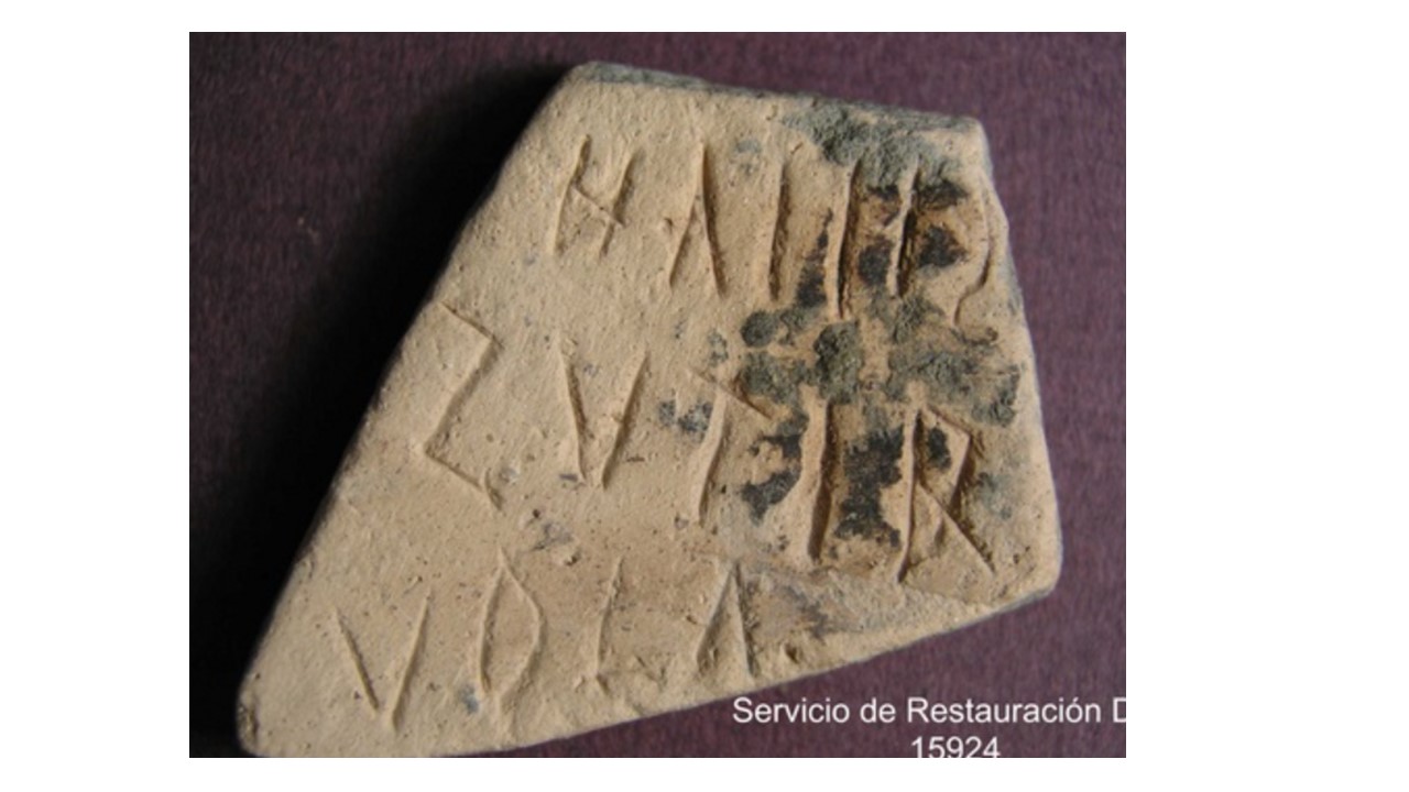 7) Un grafito no cuestionado de Iruña-Veleia (pieza 14469), descubierto por las restauradoras del Museo de Arqueología de Álava, con paralelos con grafitos cuestionados del yacimiento.