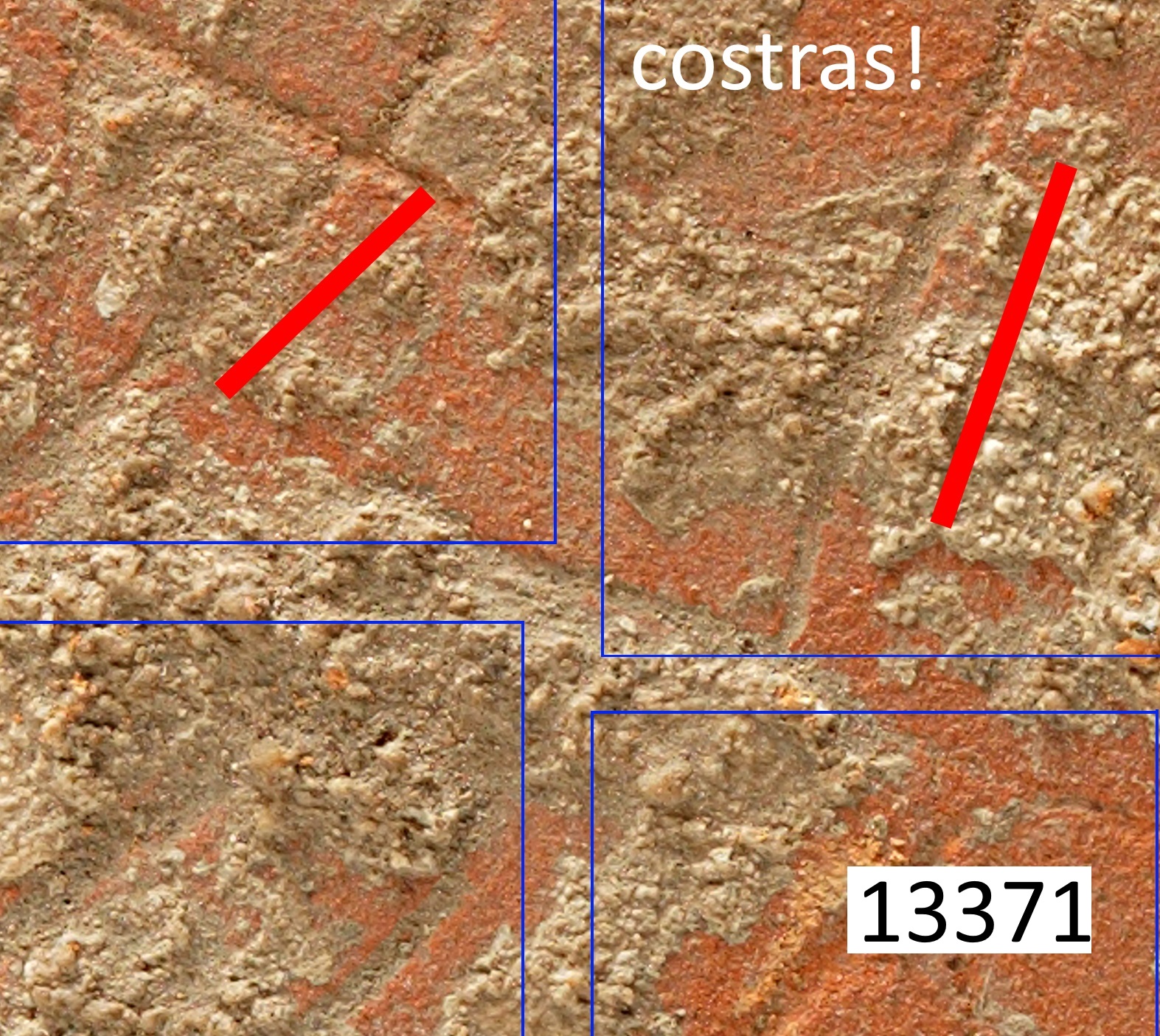 “El grafito sobre ladrillo 14469, VIIL(II)I(A) GORI / VIILIII NOVVA / VI(…)(A)III, que podría representar un mapa del lugar, cuando se llevó a restauración tenía muchas concreciones, y aunque se adivinaban las letras, no se leía bien. Hicieron un trabajo minucioso para que se viera bien la inscripción. El abogado de la defensa preguntó lo mismo que la vez anterior, si la inscripción fuera hecha recientemente se notaría a simple vista, responde que sí, para seguidamente responder a otra pregunta que en su opinión el grafito era antiguo.” [25].